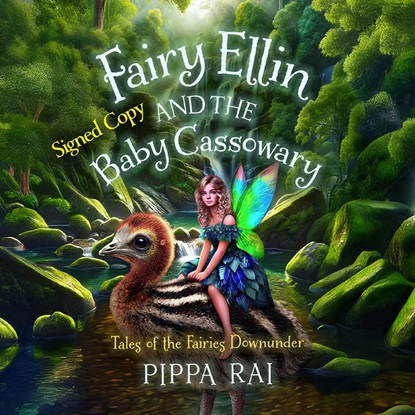 Deep in the heart of the enchanting Daintree Rainforest lies Rainbow Falls, a magical fairy village surrounded by cascading waterfalls and lush greenery. Here lives Fairy Ellin, a joyful and adventurous fairy with a heart full of love for nature and the creatures living in her rainforest.